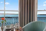 A spacious deluxe room with a large bay window. Panoramic views of South Beach, Caldey Island and to the left, the island just off Castle Beach which this room is named after - St. Catherine's Island.