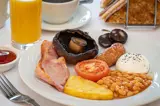 Vegan sausages, roasted tomatoes, roasted portobello mushroom, hash brown, baked beans and a Pembrokeshire egg (poached, fried or scrambled)